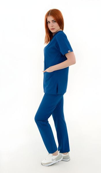 Doktor, hemşire, anestezi teknisyeni ve ebeler başta olmak üzere tüm sağlık personelleri tarafından rahatlıkla kullanılabilen bu seri, ince kumaş yapısı sayesinde özellikle kapalı birimlerde ve yaz aylarında ferah bir kullanım sağlar. Takımın üst forma tasarımı, modern V yaka ve takma kol kesimiyle dikkat çekerken; bir adet göğüs cebi, iki adet yan gizli cebi ve yan yırtmaç detayları personelin operasyonel hareket kabiliyetini en üst seviyeye taşır.